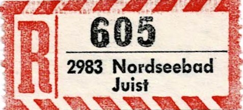 ein Beispiel R-Zettel vom Nordseebad Juist, Postleitzahl 2983