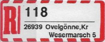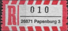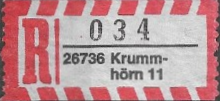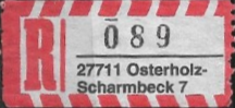 Einschreibezettel mit fünfstelligen Postleitzahlen überraschten in dem kurzen Zeitabschnitt vom 1. Juli 1993 bis zur Einführung der Label Varianten (ohne Postleitzahlen und Ortsbezeichnung) ab 1. April 1997 mit unterschiedlichen Varianten.