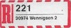 KWEA Nienburg, Berliner Ring 98, 3070 Nienburg, leider nur ein Briefstück, ohne Datum. Auf einen alten Bundeswehr Umschlag, wird das Einschreiben mit einem selbstklebenden schmalen R-Zettel verschickt: 31582 Nienburg, Weser 3, UB m